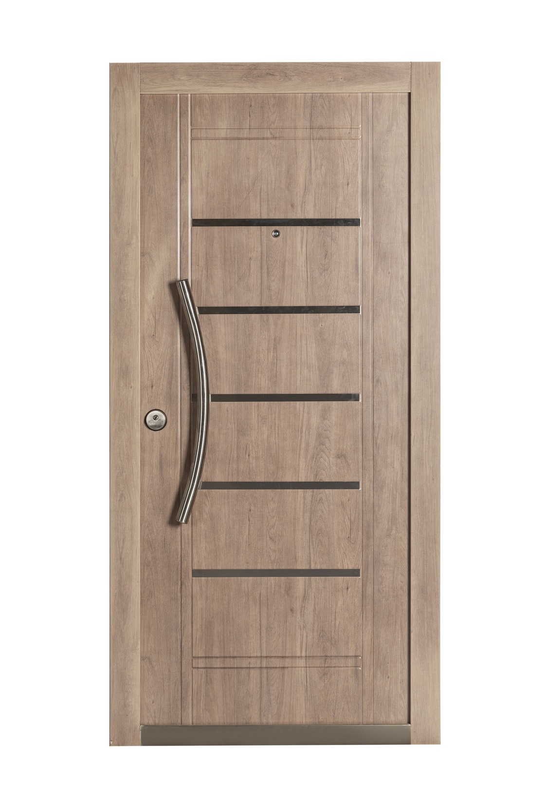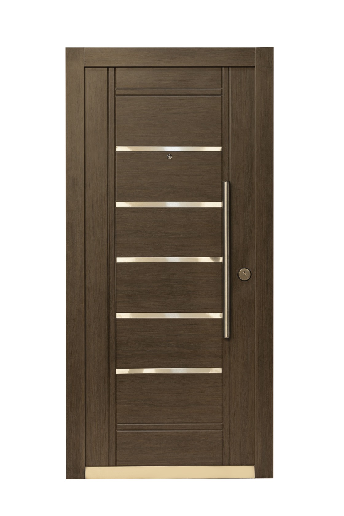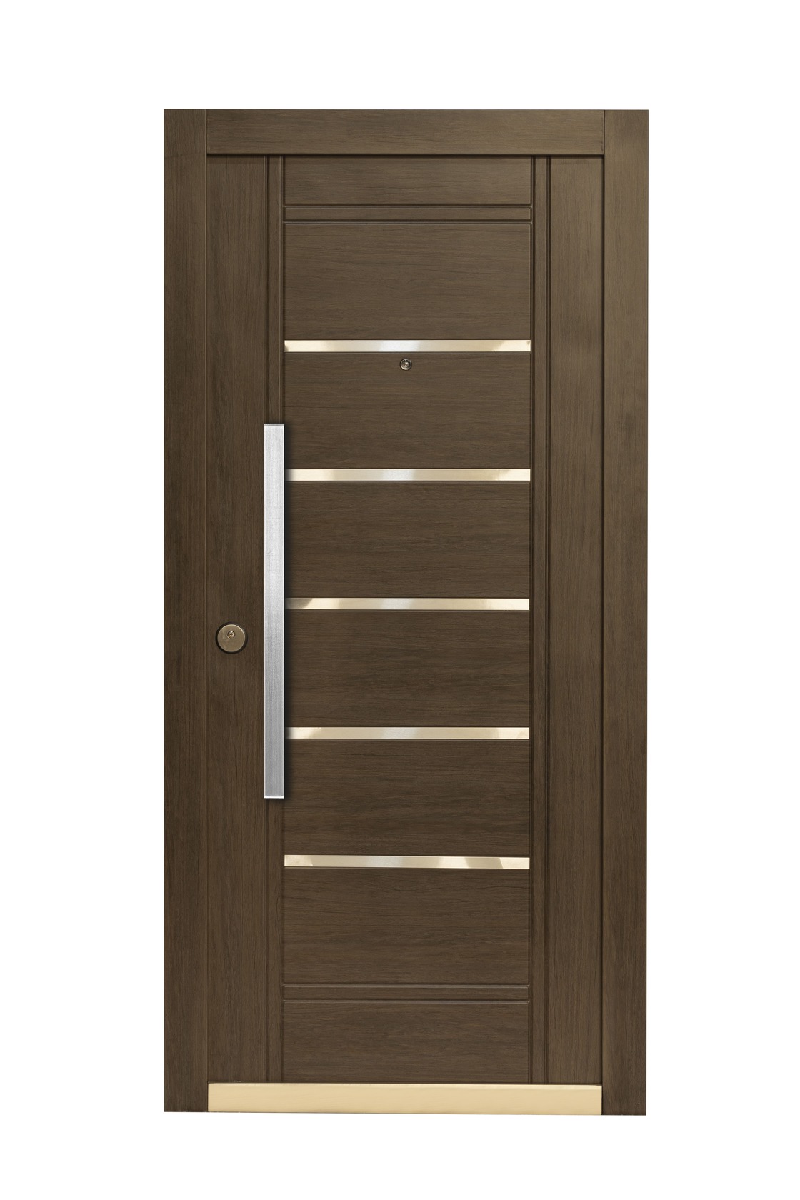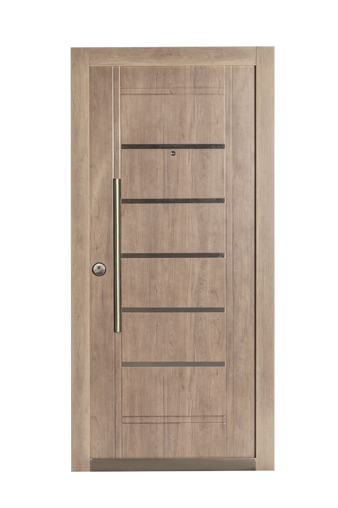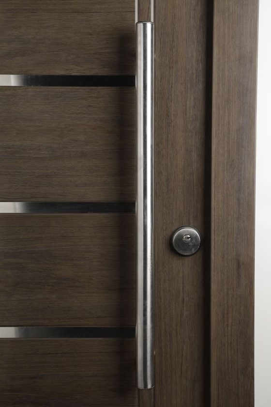 La Nueva Línea que estamos presentando cuenta con 12 modelos de puertas distintas, seis en acabado Nogal Americano y seis en Roble Blanco, además ofrece una variedad de herrajes e insertos de acero inoxidable para todos los gustos.